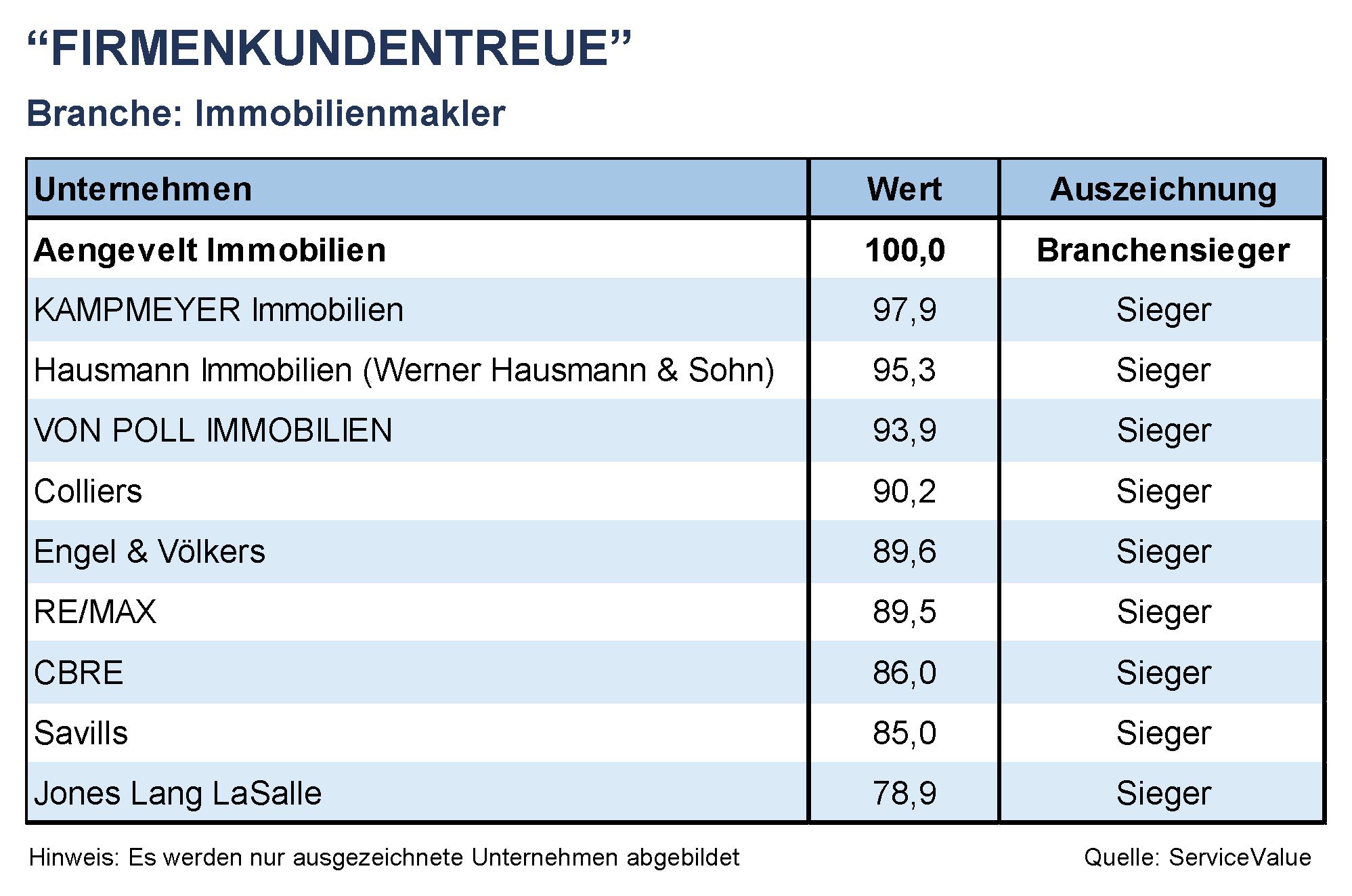 Corporate Customer Loyalty Ranking: Real Estate Agents (Aengevelt Immobilien)
