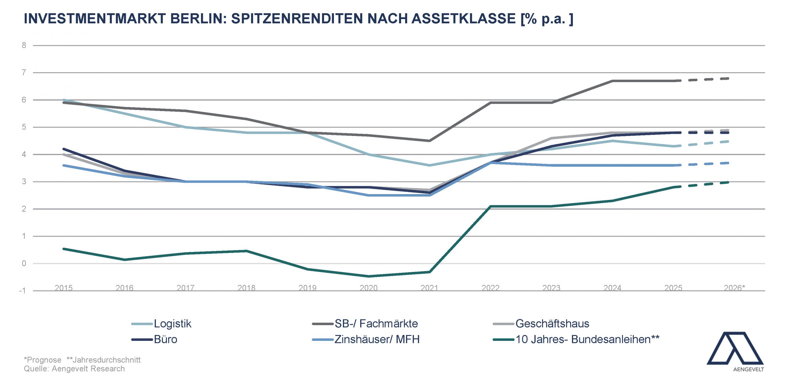 In the course of 2026 , Aengevelt Research forecasts a slight increase in prime rents of around EUR 46/m².