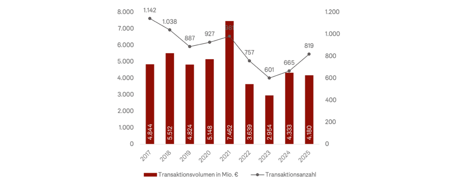 The development is supported by a broad diversification across small and medium-sized ticket sizes. The majority of transactions are for volumes of up to 7.5 million euros, while larger individual trades remain rarer. The market does not grow through individual outliers, but through functioning individual transactions with realistic prices.
