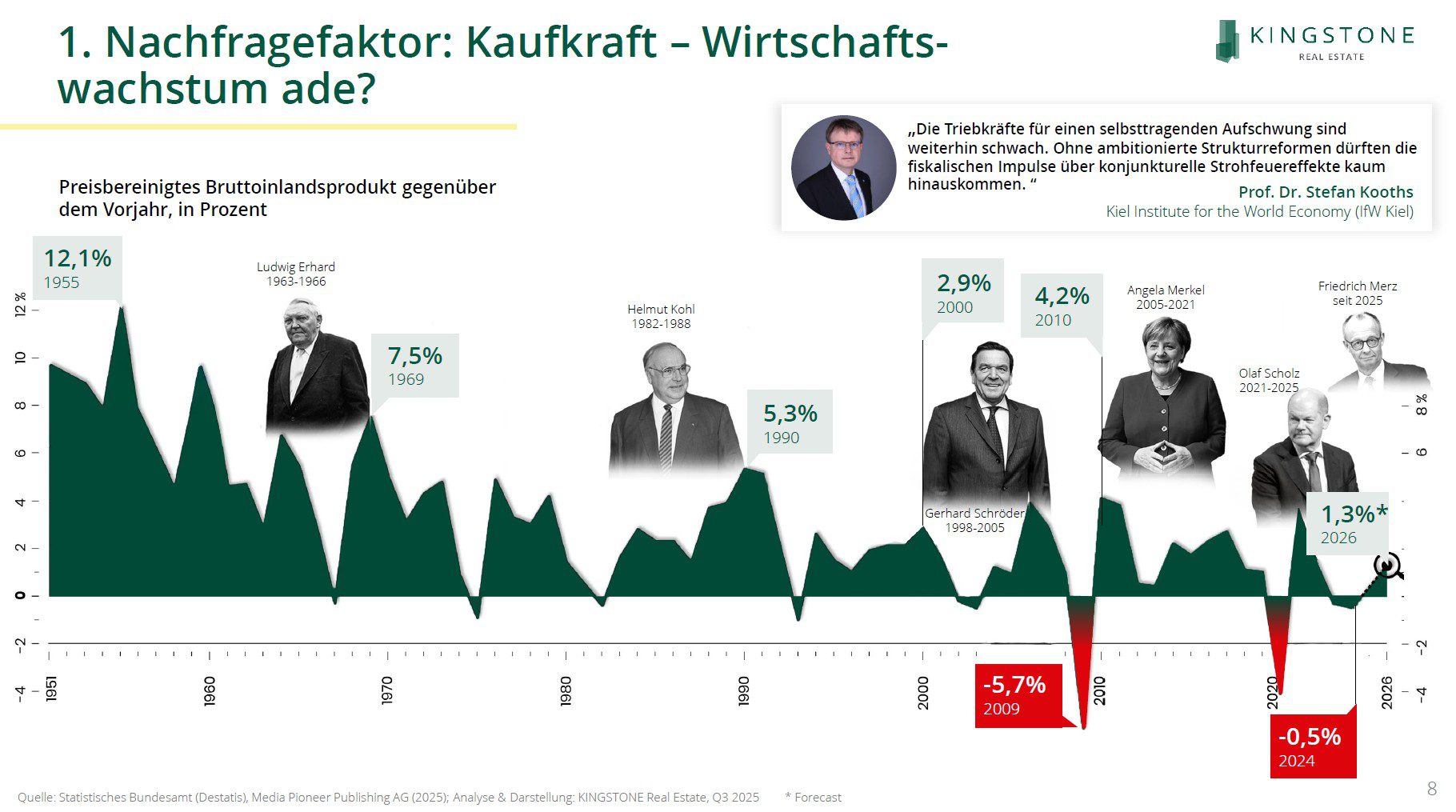 Germany is in a phase of economic fatigue: Schroeder’s agenda reforms date back two decades, the Merkel era brought stability but stagnation. Even under Olaf Scholz, the reform impulse has failed to materialise – the announced “autumn of reforms” by Friedrich Merz is still pending. Without structural reforms, the political center is threatened with a loss of economic credibility.