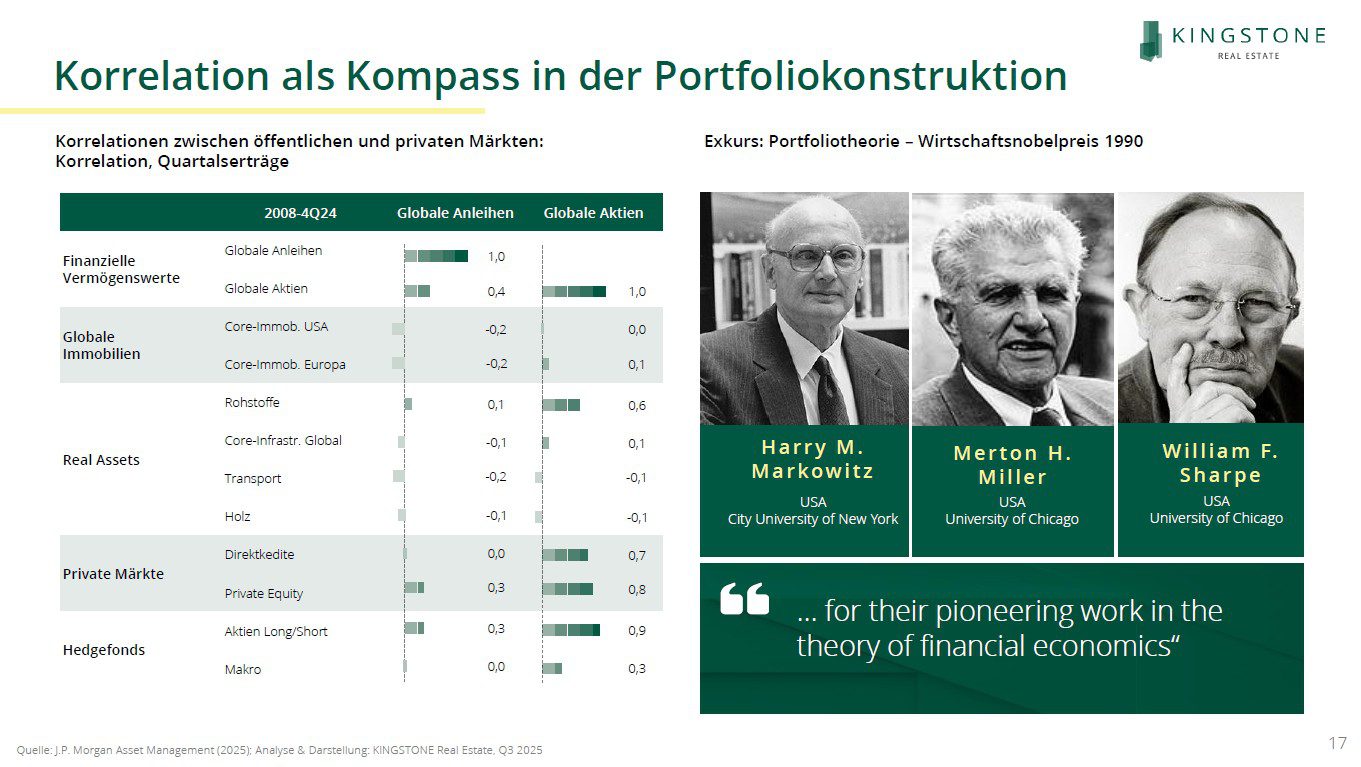 Theory and practice rarely meet – especially in real estate. But the classics of financial theory provide orientation: Markowitz, Sharpe, Fama and French connect risk and return via correlations.