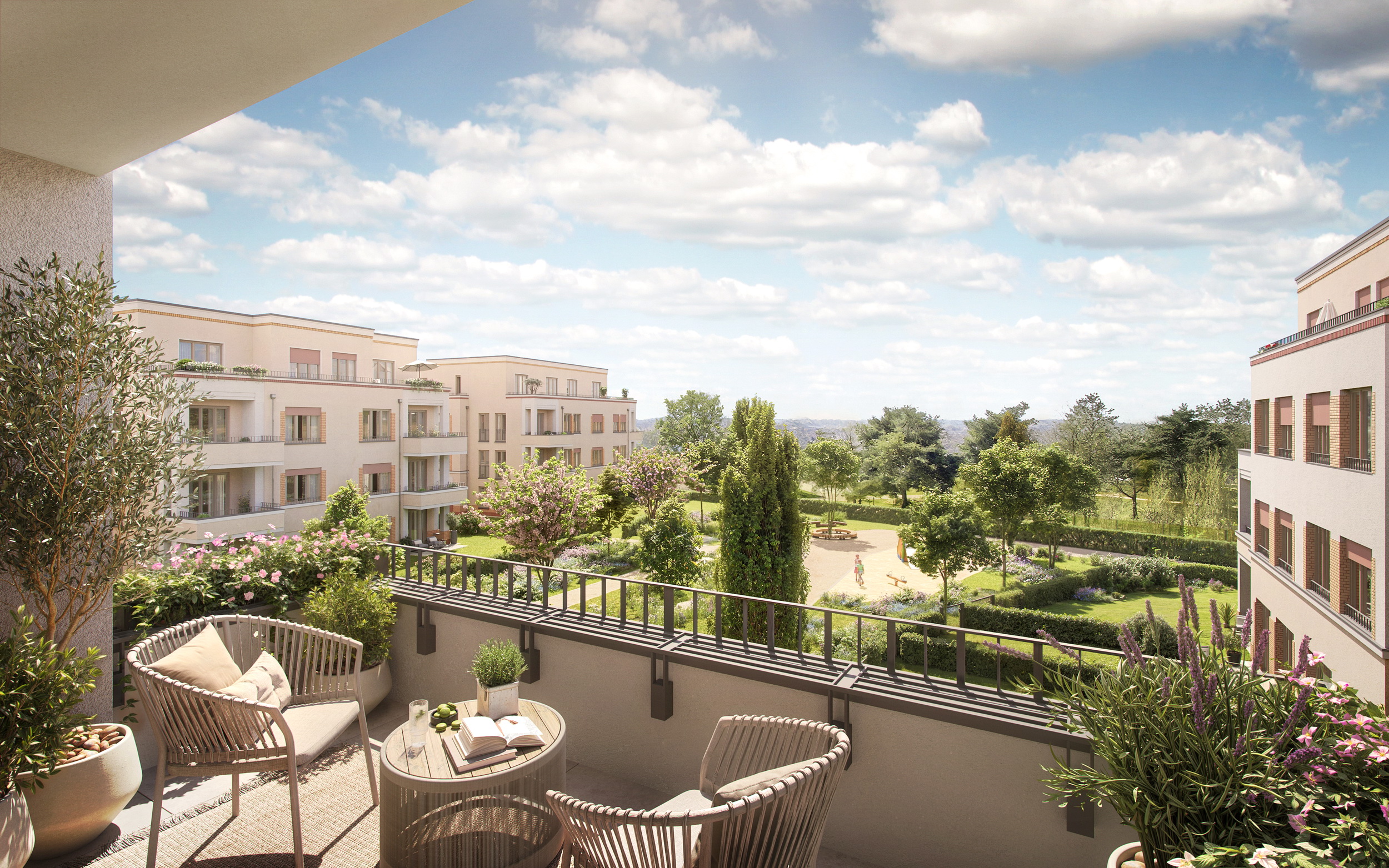 Emblematic of the nevertheless scarce supply of housing is the fact that the last building plot on Georg-Hermann-Allee is now being built on. There, BRAWO RE Development Berlin GmbH is building an ensemble in three construction phases by 2028 according to the plans of Hilmer Sattler Architekten. The ParkVillen Potsdam consist of seven representative buildings with a total of 67 condominiums and 53 rental apartments as well as six commercial units, which are marketed by Strategis AG. The current second construction phase comprises 42 condominiums with two to four rooms. The apartments offer spacious floor plans, room heights of 2.80 m, oak parquet flooring, underfloor heating, high-quality sanitary equipment, FTTH fibre optic connections, private outdoor areas and parking spaces with e-charging station pre-installation.
