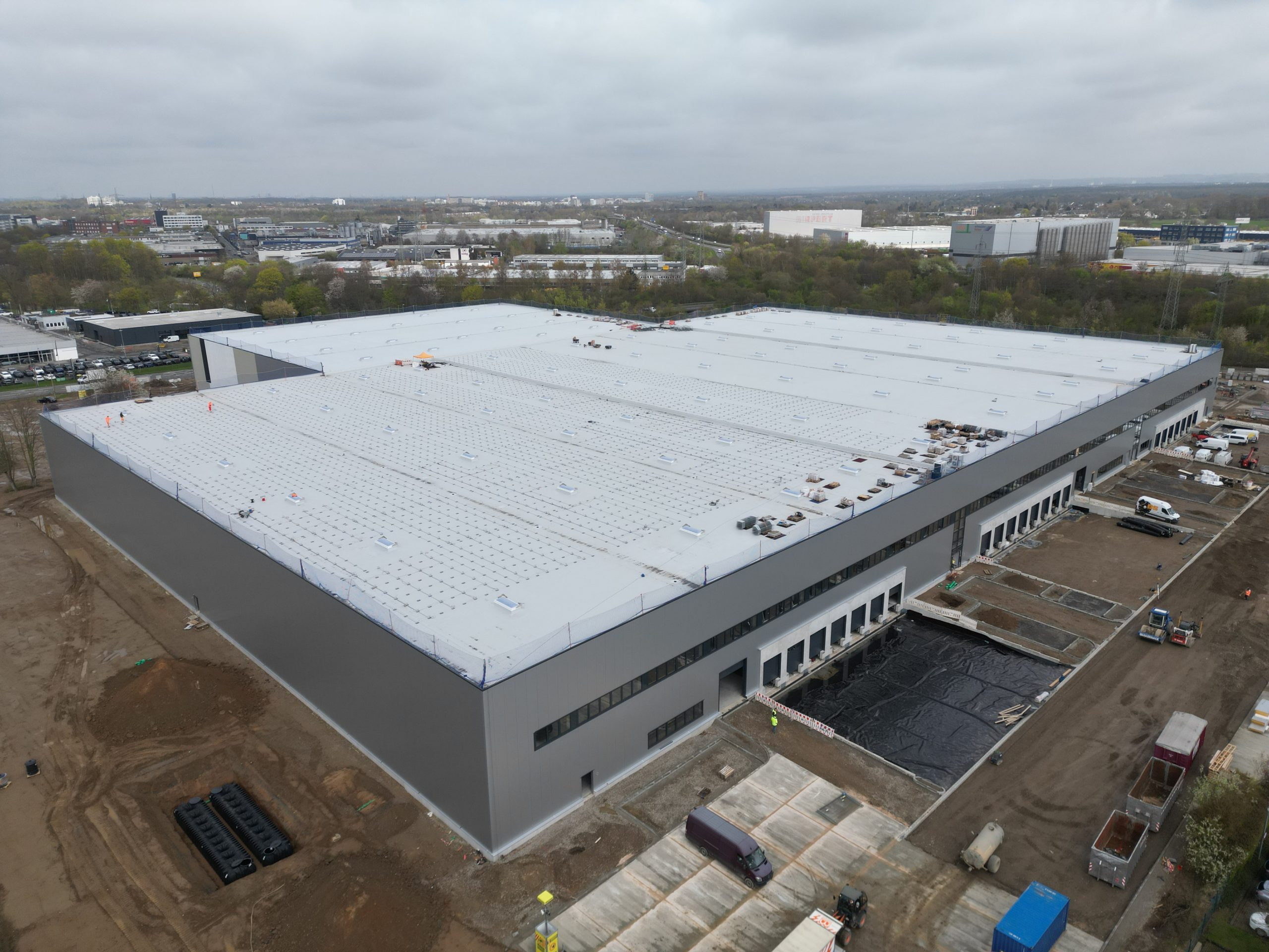 Aerial view of the logistics project Log Plaza Colonia 3 during the construction phase in Cologne-Porz. Image source: OSMAB